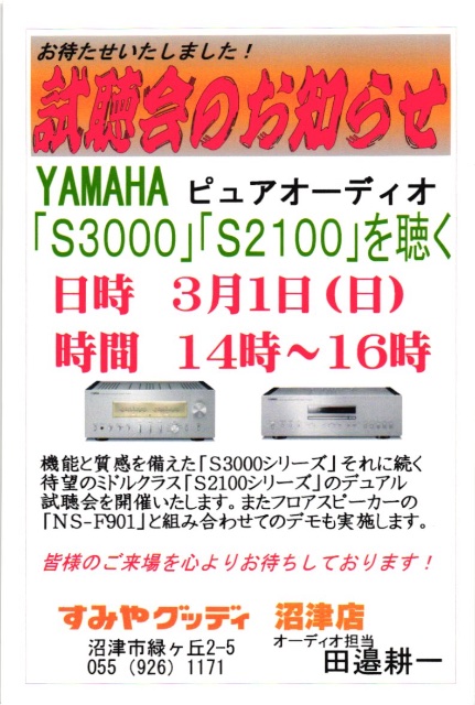 すみやさんから定期的にオーディオの視聴会の案内が来ます。このところタイミング的に行ける機会がありませんでしたが、今回は参加させていただきました。2時間の視聴会でしたが、音楽的な話と、オーディオ的な話を交えての非常に参考になる視聴会でした。